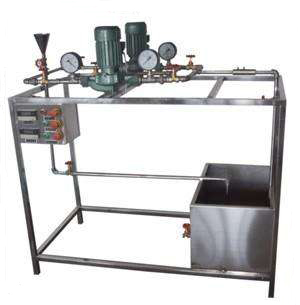 離心泵、蓄水箱、文丘里流量計(jì)、壓力表、U型壓差計(jì)、單相功率表、玻璃溫度計(jì)、實(shí)驗(yàn)管道、閥門、自循環(huán)裝置、不銹鋼框架。
