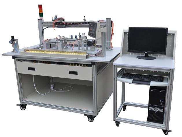 本裝置是依據機電一體化教學的要求而精心研制的。它在接近工業(yè)生產制造現場基礎上又針對教學及實訓目的進行了專門設計,強化了機電一體化的安裝與調試能力。實訓裝置由型材導軌式實訓臺、典型機電一體化設備機械部件、PLC模塊、變頻器模塊、按鈕模塊、電源模塊、模擬生產設備實訓模塊(包含上料單元、皮帶輸送檢測單元、氣動機械手搬運單元、物料傳送倉儲單元、物料返回單元)、觸摸屏、接線端子排和各種傳感器等組成。采用開放式和拆裝式結構,可根據現有的機械部件組裝生產設備,使整個裝置能夠靈活的按實訓教學或競賽要求組裝具有生產功能的光機電一體化設備。模塊采用工業(yè)標準結構及抽屜式模塊放置架,互換性強。