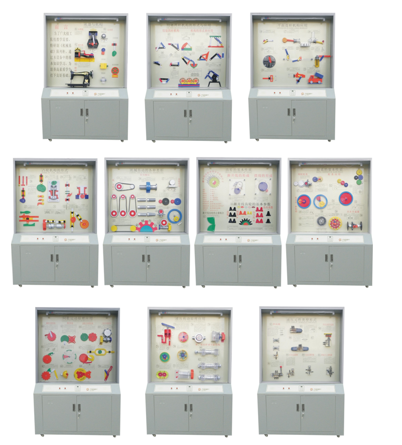 根據(jù)全國技工學(xué)校機(jī)械類通用教材《機(jī)械基礎(chǔ)》示教陳列柜是一套電化教學(xué)設(shè)備。本陳列柜共分十個柜,陳列柜通過機(jī)械模型或?qū)嵨铮浜舷鄳?yīng)的圖文資料,形象地展示與解說機(jī)械基礎(chǔ)的基本知識,加強(qiáng)學(xué)生對通用機(jī)械基礎(chǔ)的類型、結(jié)構(gòu)特點(diǎn)及其設(shè)計的感性認(rèn)知,為進(jìn)一步學(xué)習(xí)機(jī)械基礎(chǔ)奠定基礎(chǔ)。
