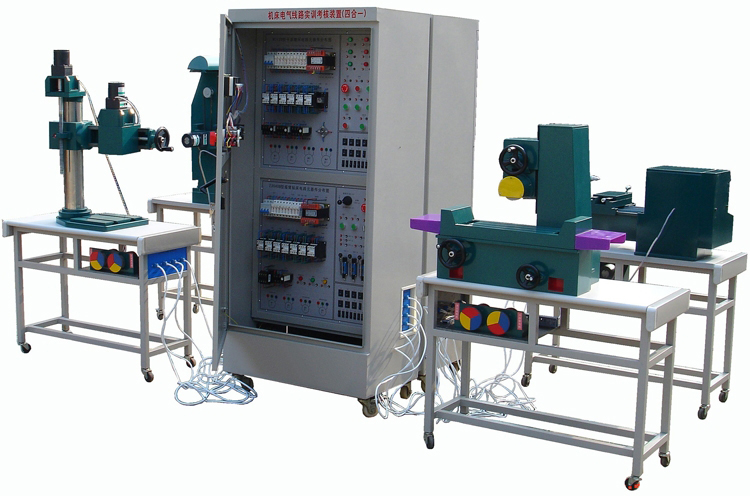 智能型四合一機床電氣技能實訓考核鑒定裝置能夠開展多種機床電氣控制線路的維修。智能型四合一機床實訓考核裝置把機床的電氣部分和機床的機械部分有機地連接在一起,采用實際工業(yè)機床上應用的電器元件及機床半實物仿真模型,將機床所有的動作全部展示出來。此外它還提供了全方位真實的機床電氣故障排除的技能訓練,可以人為的設置故障點,僅通過網(wǎng)絡切換就可以設置相應的故障點,有效地提高了學生對機床設備的維修技能。本裝置外形美觀,操作方便,直觀性強,教學更加形象生動,更接近工業(yè)現(xiàn)場化,適合維修電工初、中、高級技能鑒定中有關機床電氣部分的培訓考核。