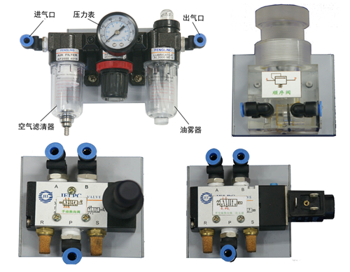 (一)氣動元件配備(都固定在元件配置板上):